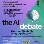 Whether passionately for or against, or just wondering what all the fuss is about, people came to Spring Bank Arts on Sunday 21st September to see work made with and without AI, try some of the tools now available, take part in a live workshop collaborating with AI or to take part in the final debate.